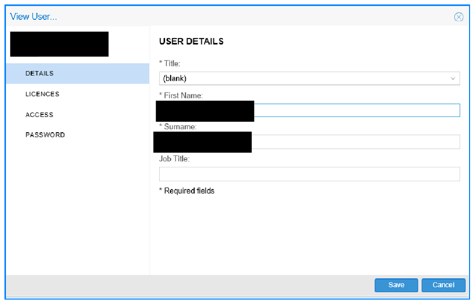 Clicking on the Edit User in the USERS screen allows you to change the details of the selected user.