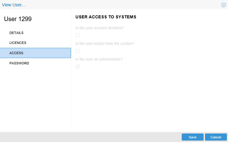 Clicking on the Toggle Access switch in the USERS screen allows you to alter the account status of the selected user.