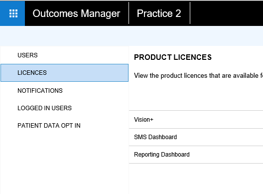 The Administration section of Outcomes Manager - GP practice allows you to manage users, licences and other practice level tasks