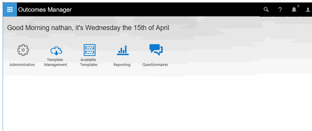 Outcomes Manager is a web-based interface that centralises access to a suite of templates and enables you to manage the distribution of your Vision+ templates.