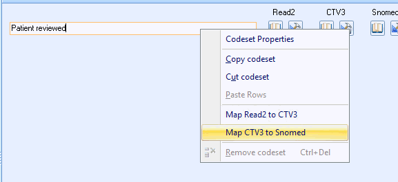 • Click on the Browser or the Builder icons next to the Codeset to add readcodes to this Codeset. The left two icons are for adding Read 2 codes, Middle two icons are for adding CTV3 codes and the right two icons are for adding Snomed codes.