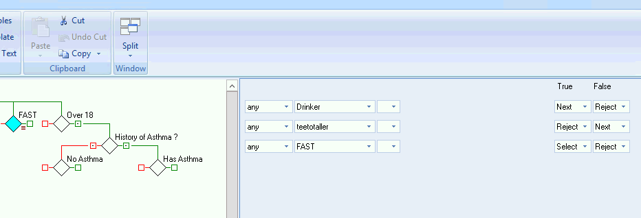 The Ruleset Builder mode allows you to see the content of a Rule Node by simply selecting it.