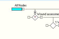 • Highlight a node in the Workflow, a green dashed line will show it has been selected: