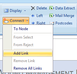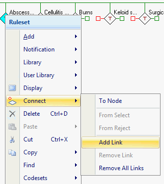 • From the Ruleset menu select Connect Add Link or right mouse click and use the Ruleset inline menu, Connect - Add Link