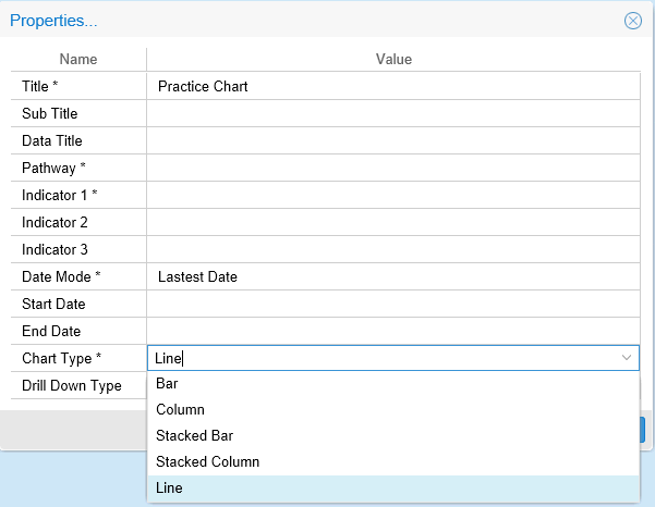 - In the Dashboard design screen (Unsaved Dashboard)* click the Add drop down icon and select