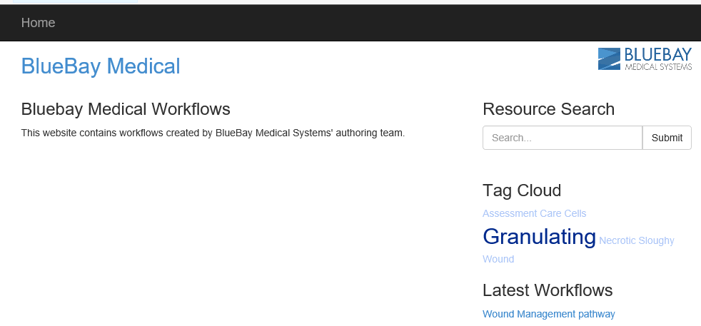 When the link is used users will see the Home page, a list of Workflows and can search using keywords that have been added in the Taxonomy settings for Workflows.