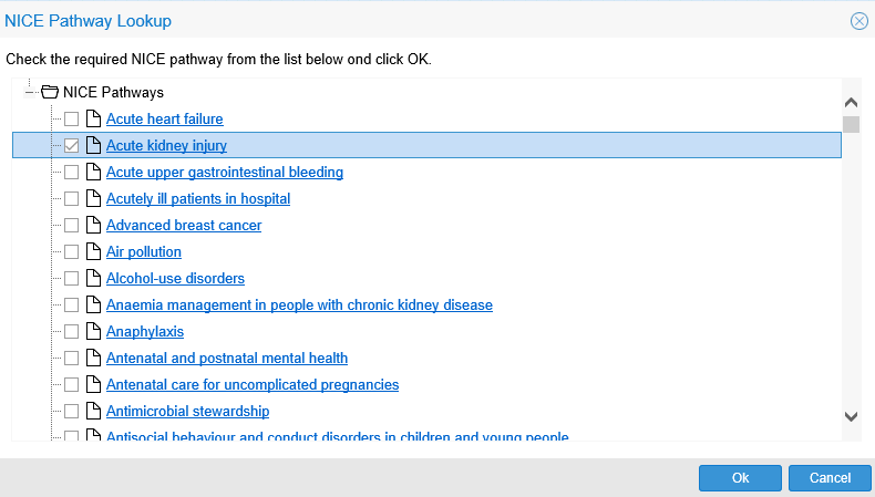 A node within a Workflow can be linked directly to NICE Pathways. There is no need to find and create a web link to the pathway on the NICE website.