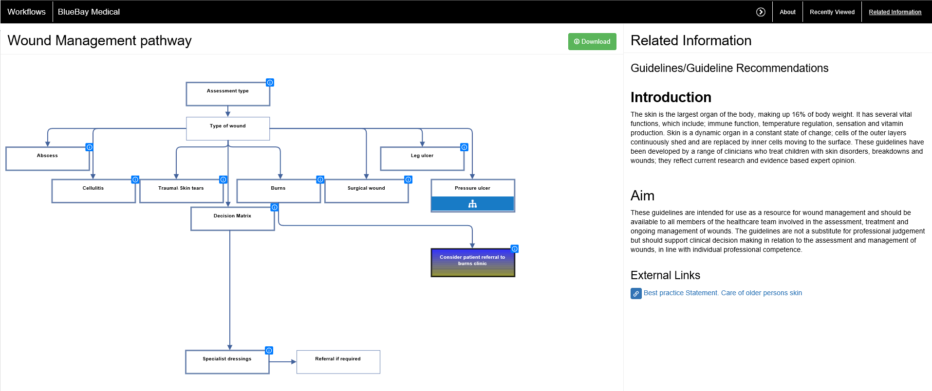 A Workflow can also be linked to alerts and fields in a pathway that has been created using the Pathway Developer tool. During a consultation an end user at a practice can display and use the workflow directly from within pathway they have opened and are using. This takes the end user to the relevant point of guidance, recommendations etc. during that point of care.