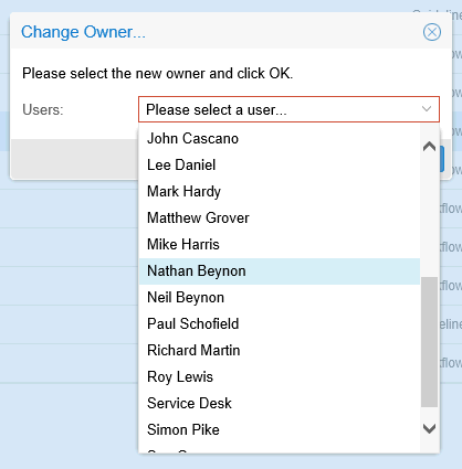 The Change Owner option in MANAGE WORKFLOWS accessed from the Admin tile, allows administrators to search for Workflows and Guidelines and then transfer them from one Workflow Author to another.