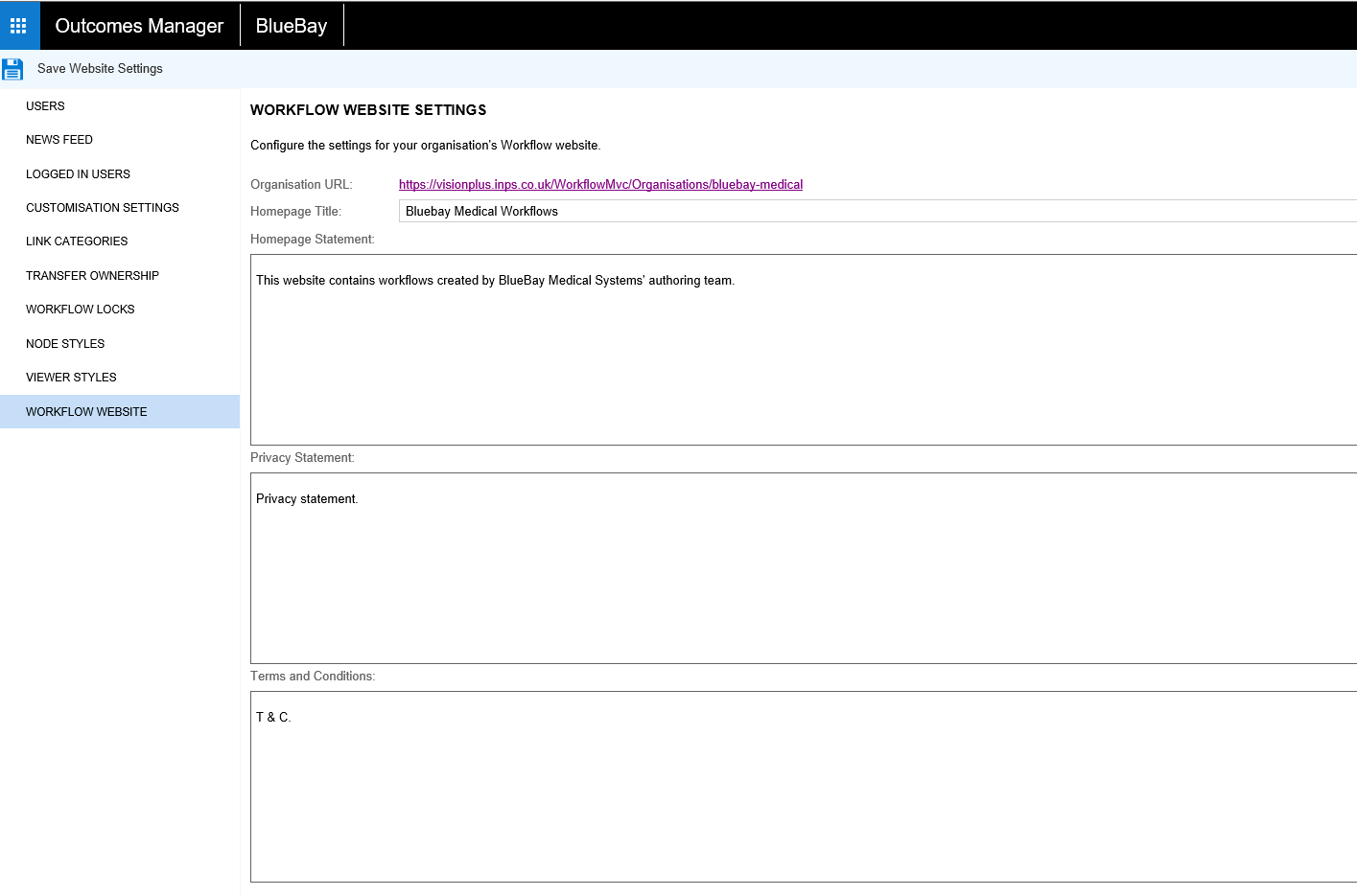 The Workflow Website in the Administration Section allows administrators to configure the settings to allow Workflows to be viewed publicly