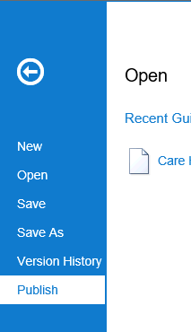 Note: to make simple changes to a Published Guideline, select Unpublish from the menu, make the changes and set back to Publish. The New Version on the menu allows you to create a new version of your Guideline, whilst users can still use the old version.