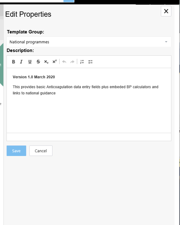 Any templates that you have made available to download can have descriptions added to them.