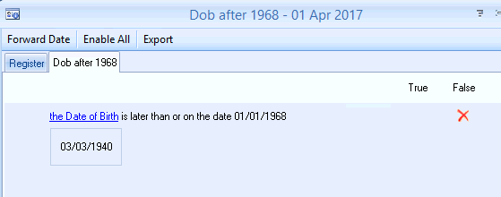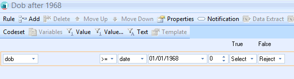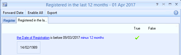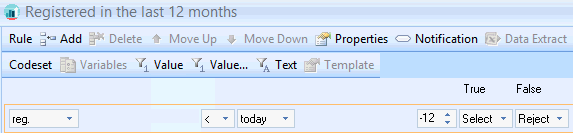 The reg parameter is used to return the date of Registration for a patient and use in a Rule Line