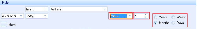 The example above is looking for the latest recording of Asthma in the last 4 months