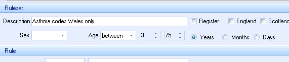 The patient Age drop down in the Ruleset Section applies the selected age or age ranges sex to the selected rule.