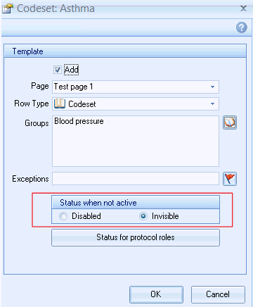 The Template properties pop up and the Status when not active can be set. This controls the behaviour of the Template field.