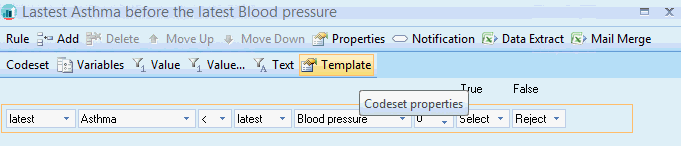 • Within the Rule Node; highlight the rule line that has been defined as a template and click the Template icon.