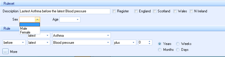 The patient Sex drop down in the Ruleset Section applies the selected patient sex to the selected rule.