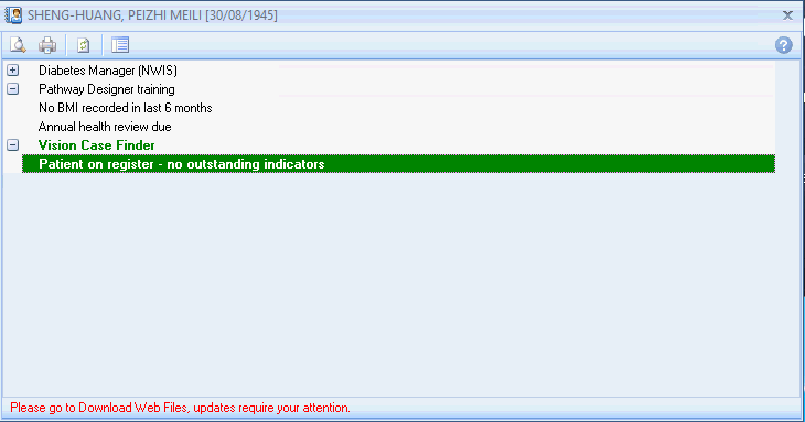 - Optional to display in the Indicator window that the patient is on the defined register and has no outstanding indicators for the pathway.