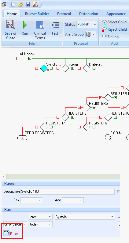 The Rule Builder function is used to build and modify Rules within Rule Nodes that you have created. It also gives you access to all the Rule controls that are available to you off the application ribbon, however it also provides enhanced functionality to those some of those controls.
