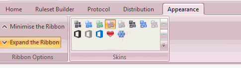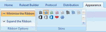 This applies a cosmetic appearance to the Development workspace. The skins control used to be available for end users to change the look of the VisionPlus BluebayCT interface (Templates, pop ups. menus etc.) Some end users PC's would display the application clearer if using a different coloured skin.