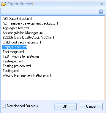 This will display any Rulesets that have been previously exported and also Rulesets that have been copied into the Import \ Export locations.