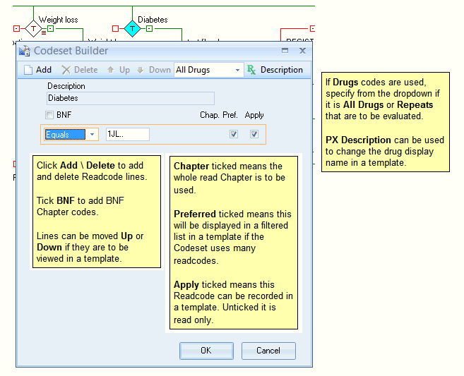 The Codeset Builder is used as a quick entry tool where the developer knows what clinical codes are to be used.