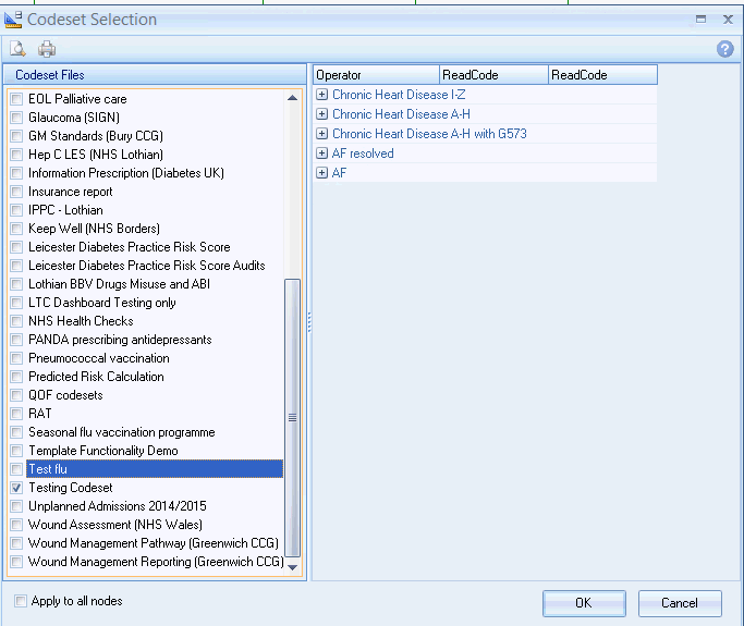 The Select control allows you to select one or more Codeset files to use in your Rules In a Pathway.