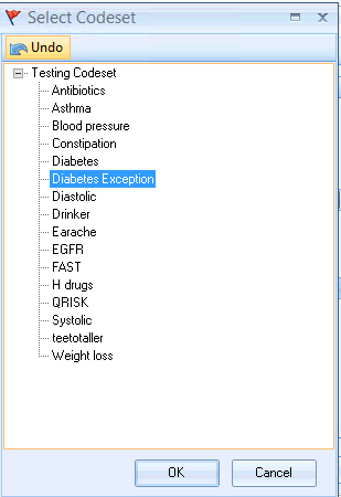 • From the Select Codeset screen, pick the Codeset you wish to create an Exception code from.