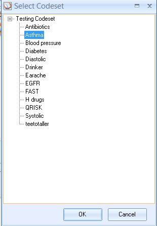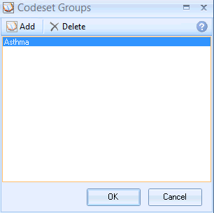 The selected Codeset then displays in the Codesets Group box. Repeat if more are required; otherwise click OK