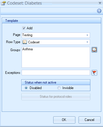 This option allows you to group Codesets on a template. This allows you to consolidate multiple rows and also saves space. This can be only used with a Codeset Row type only.