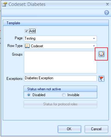 • After clicking Add and specifying a Row Type of Codeset; click the Groups browser icon
