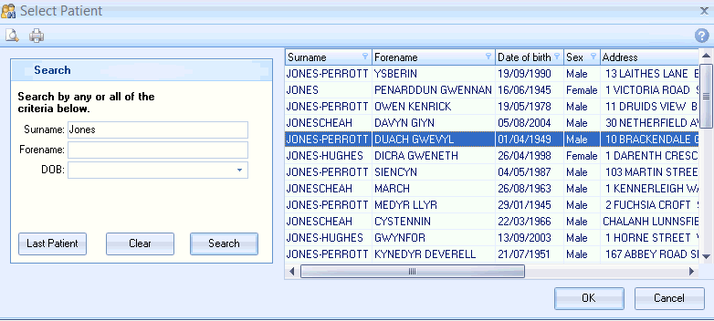 • Search for a patient, or use Last Patient, then click OK.