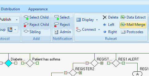This control on the menu is used on a Rule Node containing a single Rule only. This is because the Mail Merge control on the ribbon is set to read only the top level rule in a rule node. If you have a rule node containing multiple rules you must set up the Mail Merge control using the Rule Builder function.