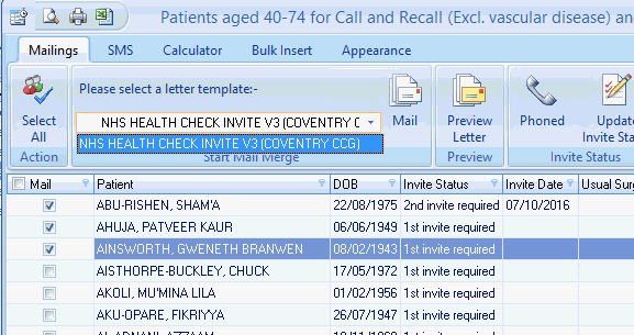 The letters can be used to invite the patients to the practice. The system then counts, tracks and saves these letters against the patient record to automate the call and recall system.