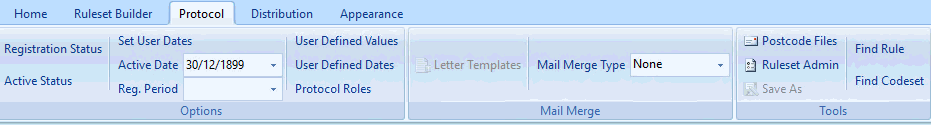 The Protocol tab is used for high level configuration options, mailing options and administration.