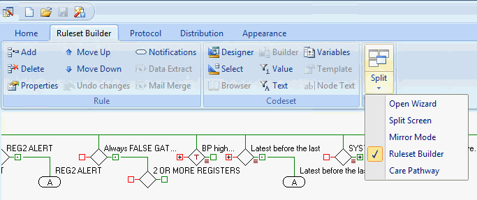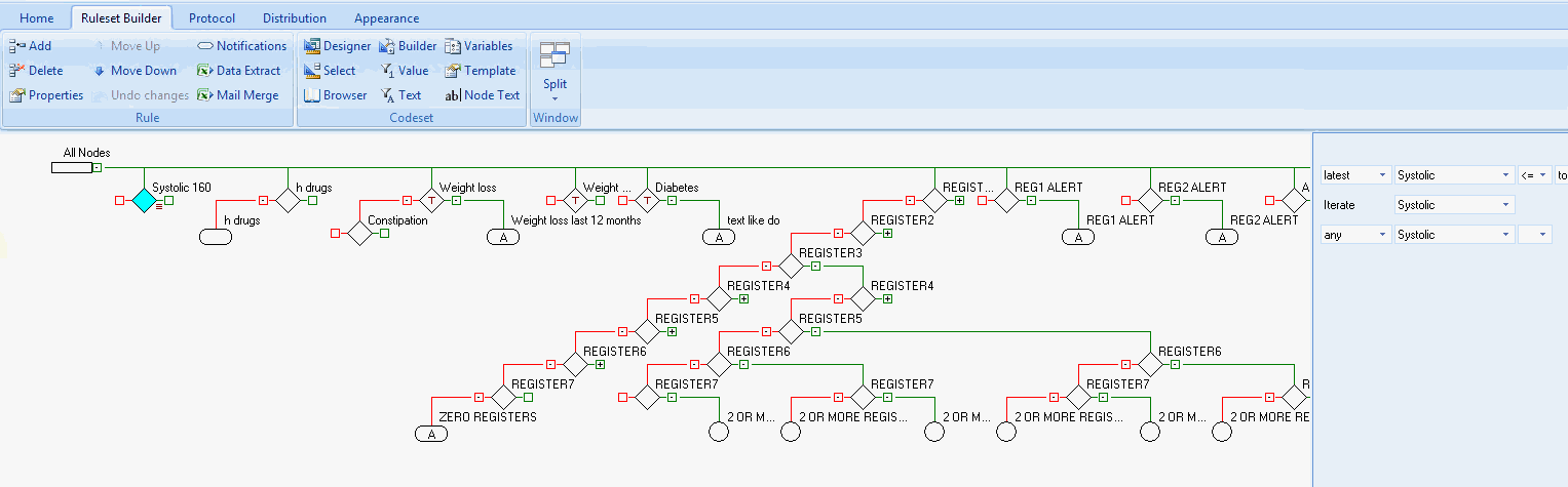 • With either the Home or Ruleset Builder tab active, highlight a Rule node you wish to work on.