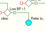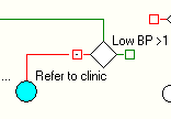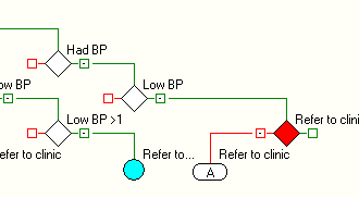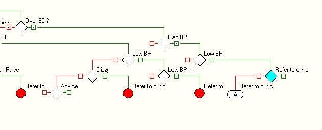 In the image above the Over 65? Rule Node will generate an alert from the Reject branch to refer a patient to a clinic, if they meet the following criteria: