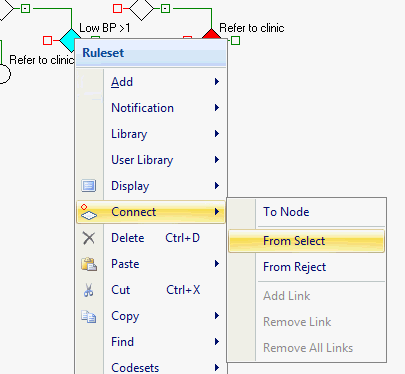 • Right mouse on the Rule Node you wish to connect TO