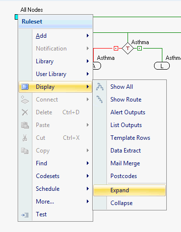 Note: The Expand and Collapse items in the bottom section of the display menu, expand and collapse from the selected Rule Nodes only.