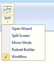 • Click on the Home tab, click on the Split group menu item and select the Workflow option.