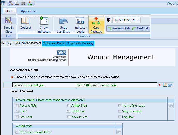 • Highlighting a linked field on a template, will activate the Care Pathway icon in the template menu..