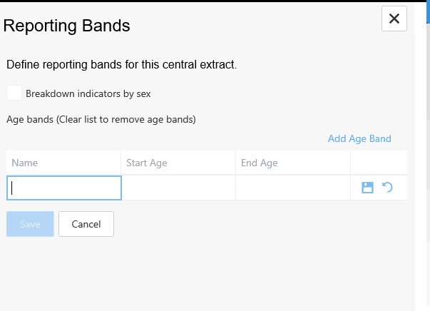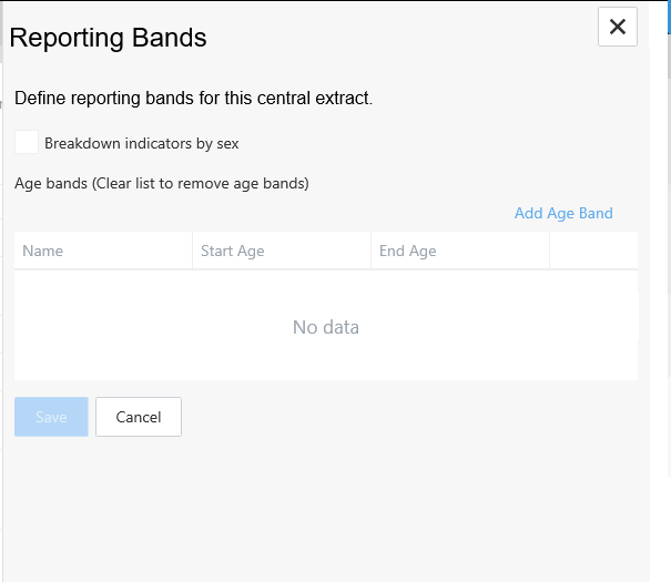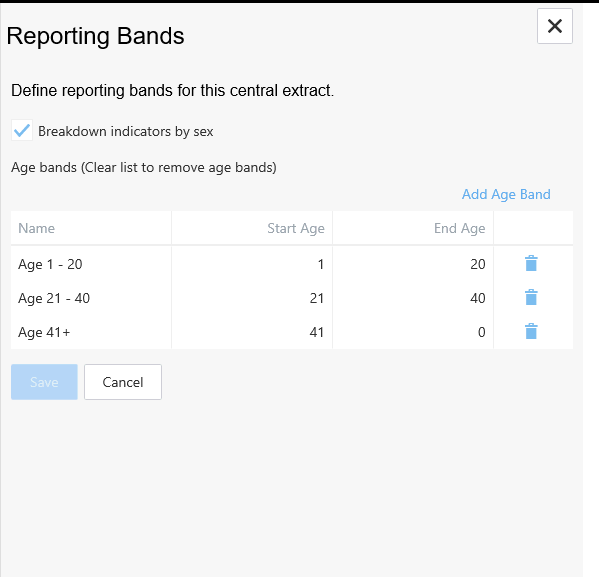 The Age Bands window opens in the right hand pane.