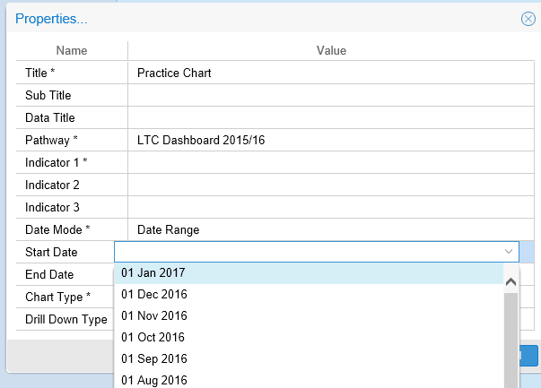 Your chosen summary chart will then display the total of the selected indicators by the dates you have specified.