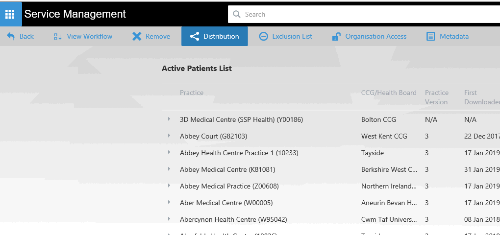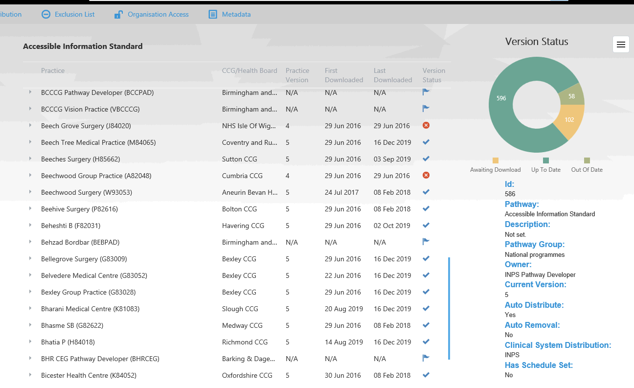 Once you have made your selection the Service Management Dashboard screen will update and you can see your pathway and the organisations it has been set to distribute to.
