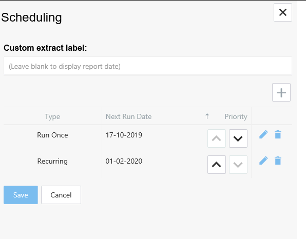 If multiple schedules have been set, then the priority can be changed by clicking the up or down arrows as required.