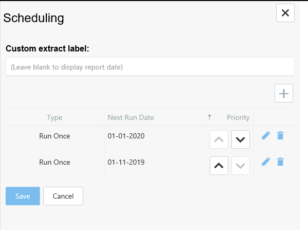 If multiple schedules have been set then the priority can be changed, by clicking the up or down arrows as required.