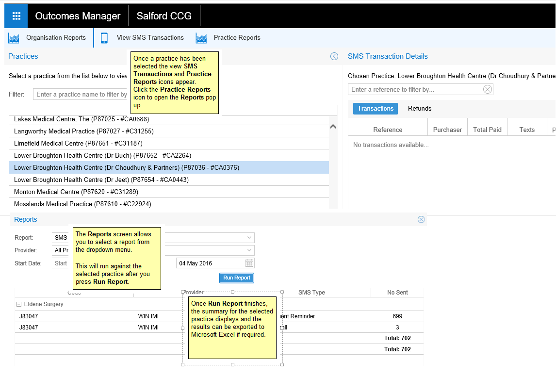 The Practice Reports icon runs the same reports as the Organisation Reports icon albeit at a practice level