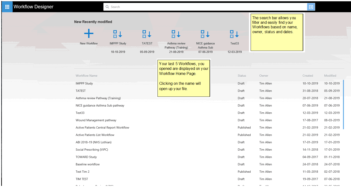 Example Home Screen (Workflow Designer)