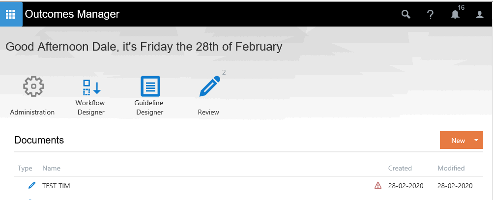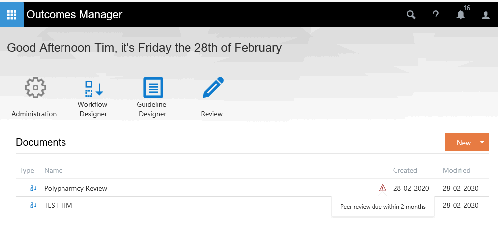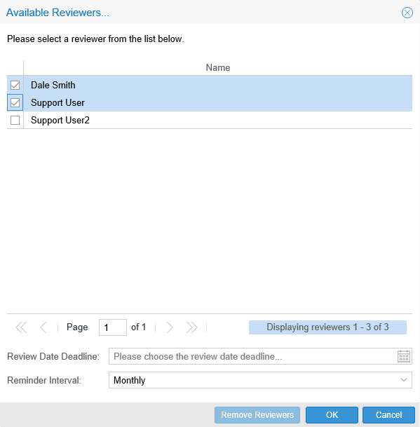 The owner can set the status of their Workflow from Draft to Review. Once this status has been set then the owner can select a user who has been set up as a Reviewer within Outcomes Manager to check their Workflow.
